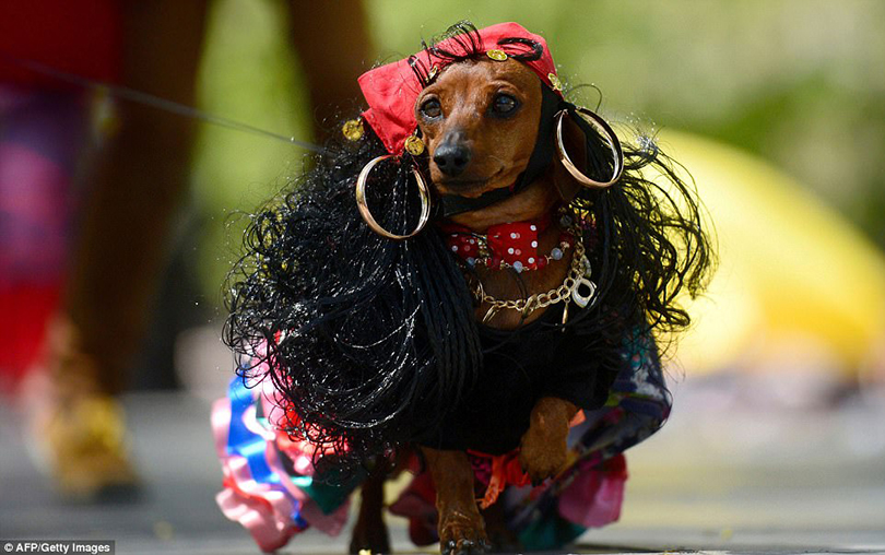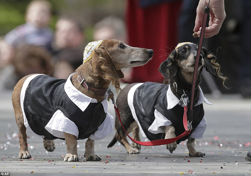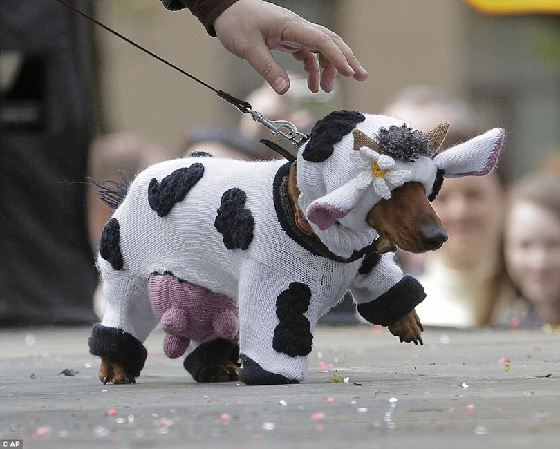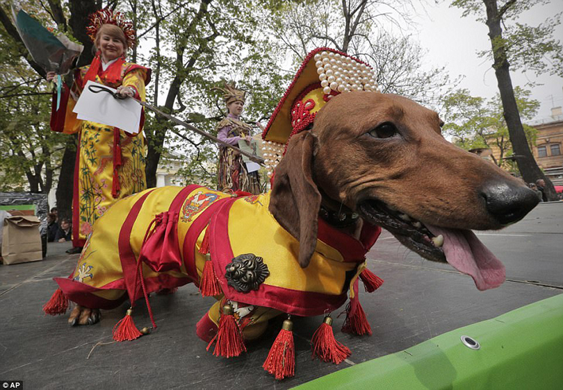 रुसका पिटर्सबर्गमा भएको वाषिर्क पहिरन परेडमा एक सय भन्दा धेरै कुकुरहरु विभिन्न पहिरनमा सजिएर सडकमै क्याटवाक गरे ।