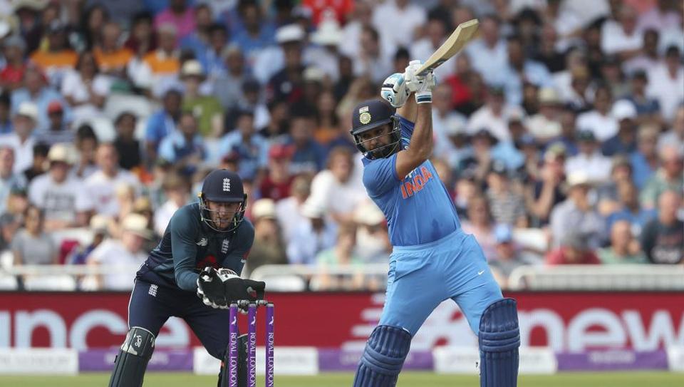 त्यसअघि रोहितले पहिलो विकेटका लागि शिखर धवनसँग ५९ रनको साझेदारी गरे । २७ बल खेल्दै धवनले ८ चौकाका साथ ४० रन बटुले । केएल राहुल ९ रनमा अविजित रहे । घरेलु टोलीका लागि मोइन अली र अदिल रसिदले समान १ विकेट लिए ।