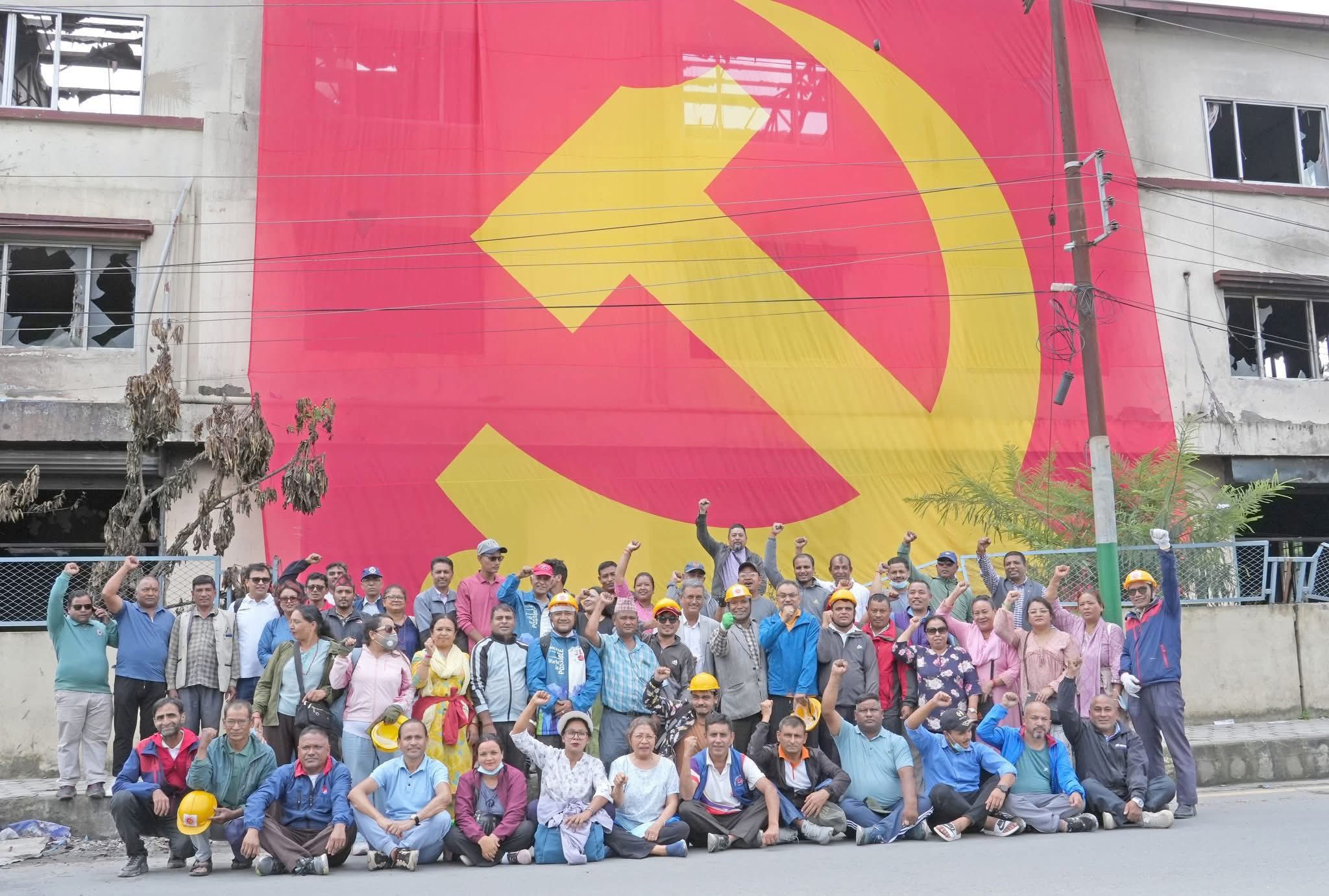नेपाल ट्रेड युनियन महासङ्घ (जिफन्ट) का नेता–कार्यकर्ताले सोमबार बिहान ११ बजे हँसिया–हथौडा अङ्कित ४५/४५ फिट आकारको झण्डा पार्टी कार्यलयमा पुगेर राखेका हुन् । उक्त झण्डा कार्यालय भवनको पूर्वतर्फ सजाएर राखिएको हो। गत भदौ २३ र २४ गते ‘जेनजी’ आन्दोलनका क्रममा प्रदर्शनकारीले एमालेसहित विभिन्न राजनीतिक दलका पार्टी कार्यालय र नेताहरूका आवासमा तोडफोड तथा आगजनी गरेका थिए।