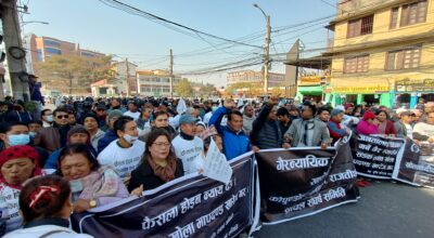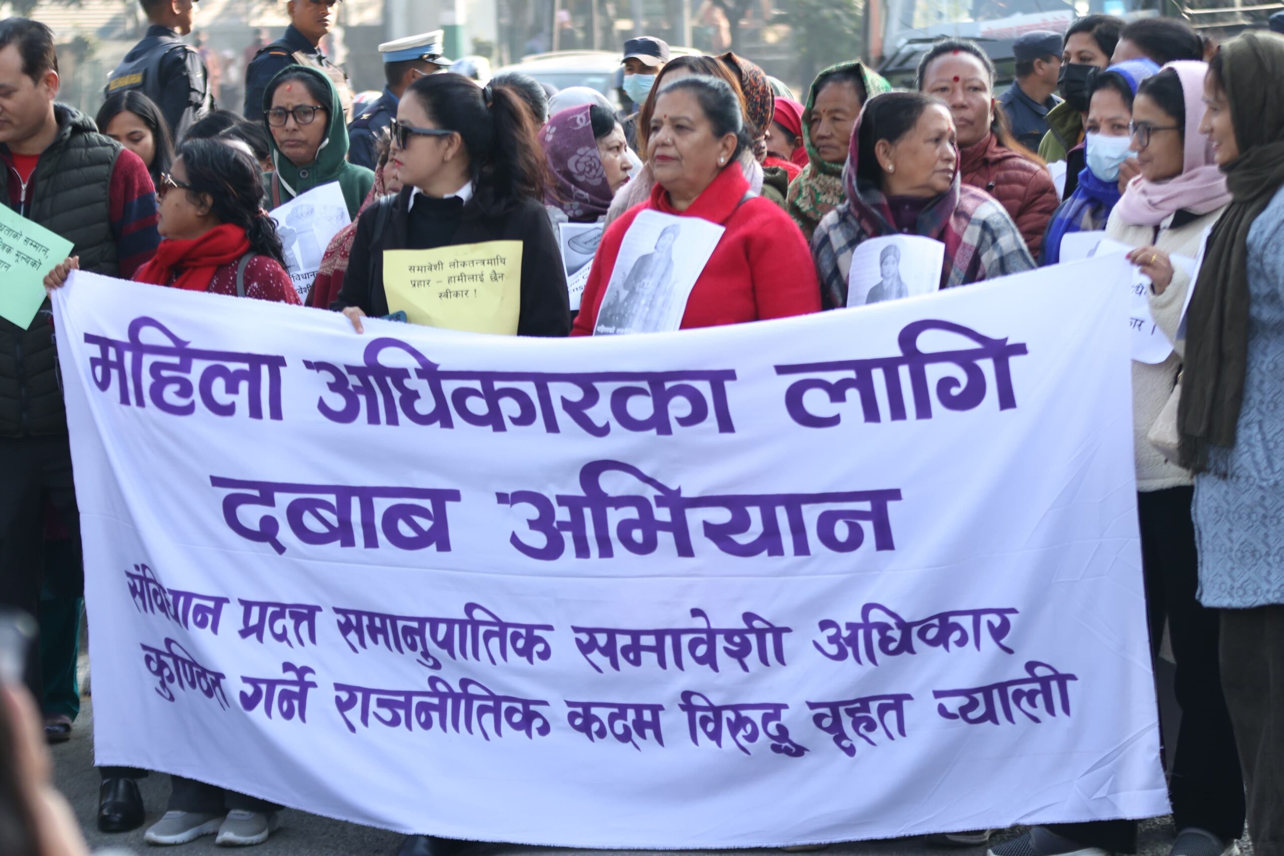 पुस १८, २०८२, काठमाडौं । संविधानले सुनिश्चित गरेको समानुपातिक समावेशी अधिकार कुण्ठित गरिएको आरोप लगाउँदै ‘महिला अधिकारका लागि दबाब अभियान’ले माइतीघर मण्डलामा विरोध प्रदर्शन गरेको छ। अभियानका सहभागीहरू शुक्रबार बिहान माइतीघरमा भेला भई बानेश्वरसम्म विरोध र्यालीसहित प्रदर्शनमा उत्रिएका हुन्।