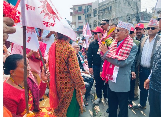 फाल्गुन ४, दमक । केपी शर्मा ओली नेतृत्वको नेकपा एमाले का अध्यक्ष एवम् पूर्वप्रधानमन्त्री ओली सोमबार बिहानदेखि दमकमा मतदातासँग प्रत्यक्ष भेटघाट तथा घरदैलो कार्यक्रममा सक्रिय रहनुभएको छ। झापा क्षेत्र नं. ५ अन्तर्गत दमक–५ को यलम्बर चोकबाट भेटघाट कार्यक्रम सुरु गरिएको हो।
