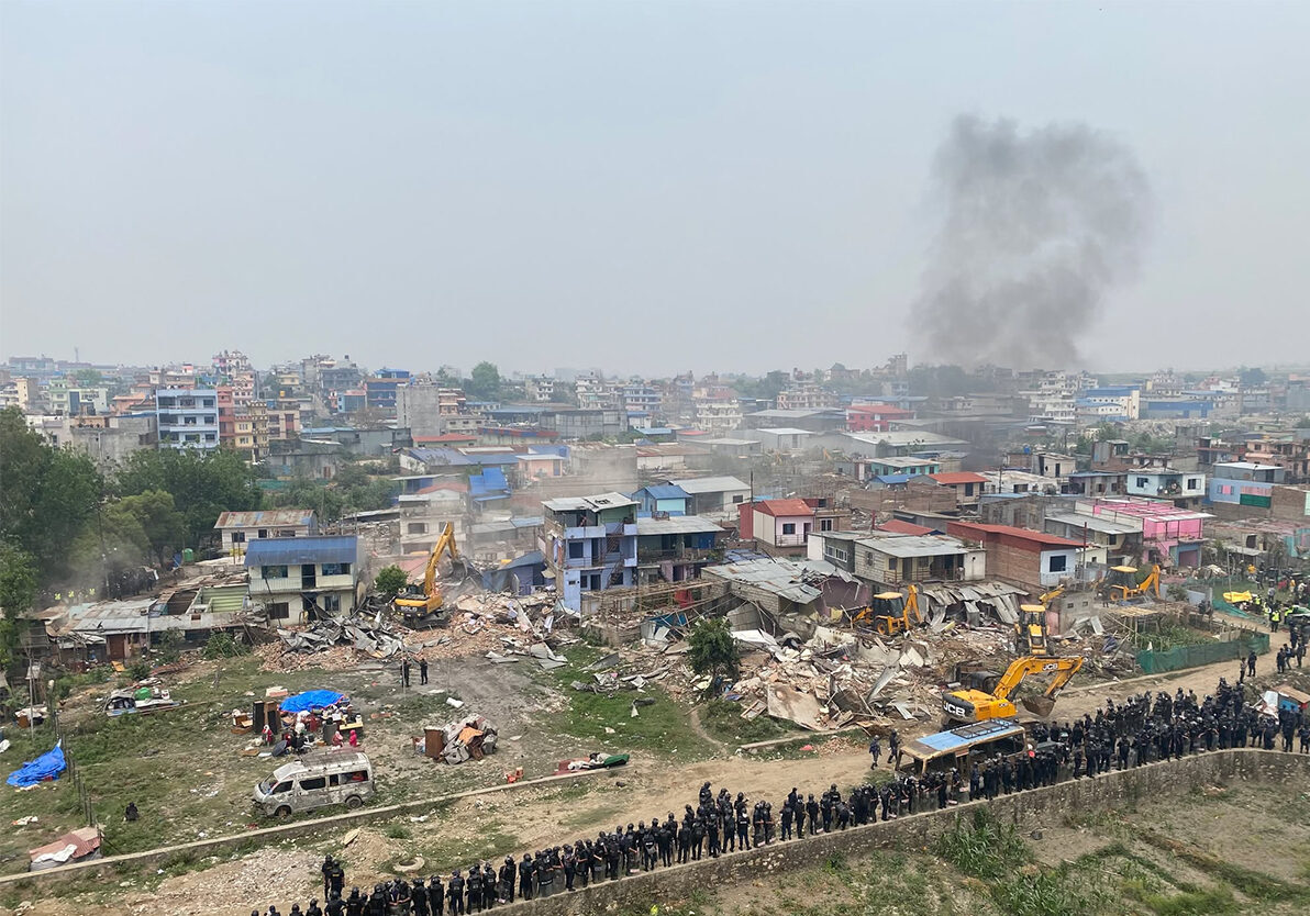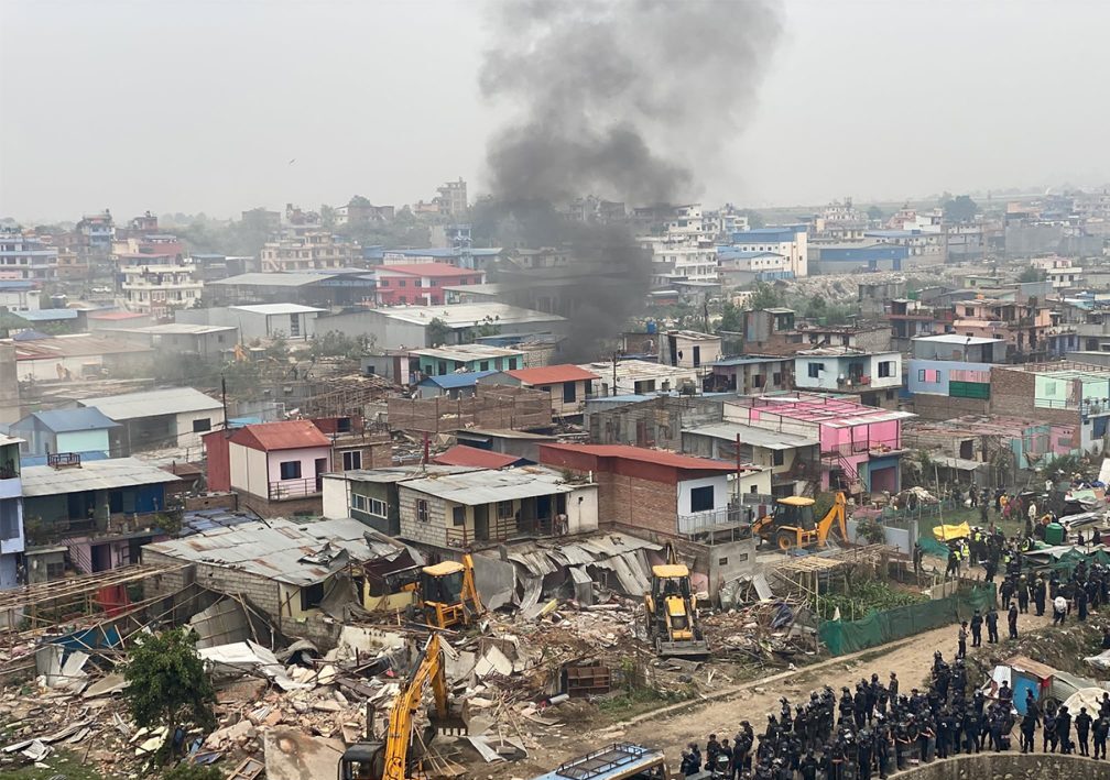 आइतबार नेपाल प्रहरी र सशस्त्र प्रहरी बल नेपाल को सहयोगमा सरकारी टोलीले मनोहरा नदी किनारका अतिक्रमित बस्ती हटाउने काम अघि बढाएको छ।